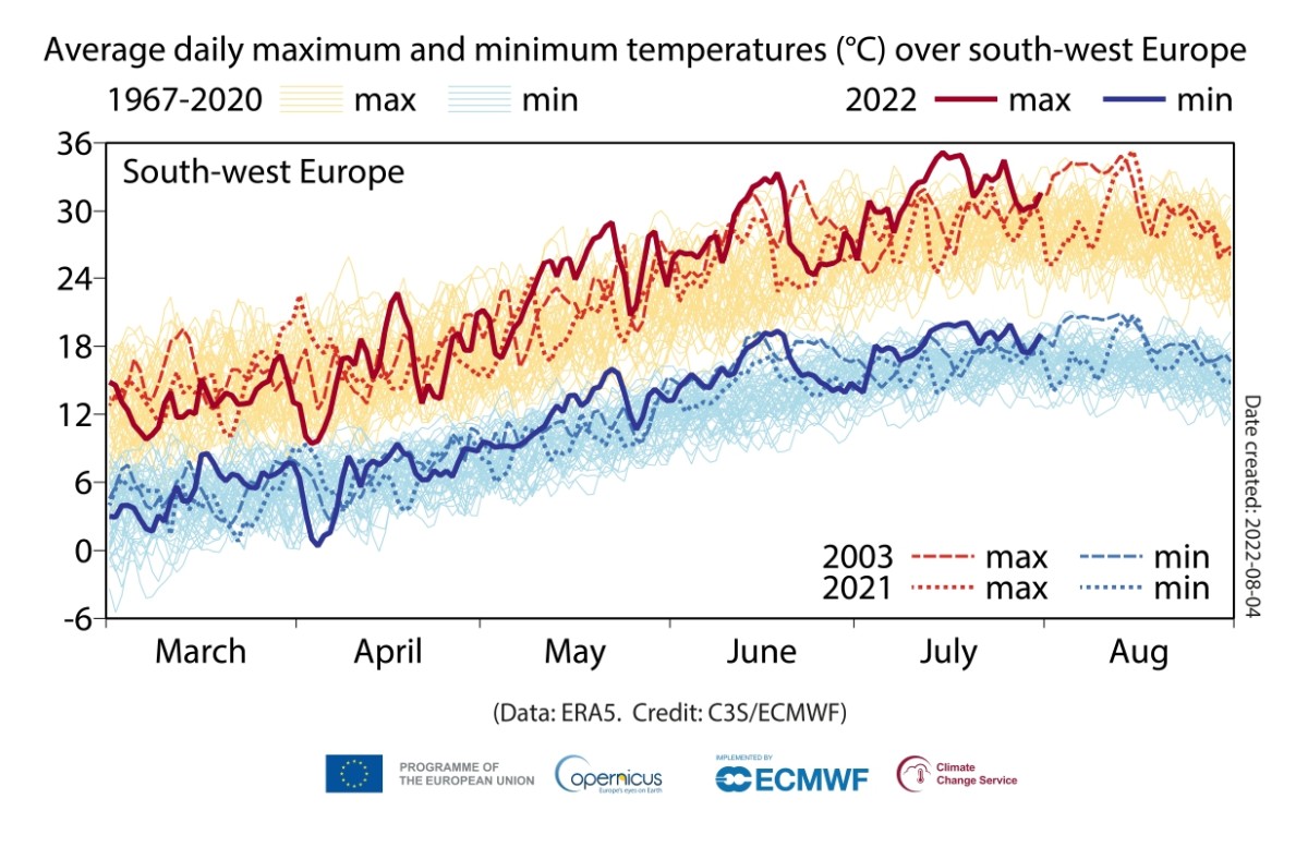 Sedmi mjesec 2022. godine bio jedan od tri najtoplija jula ikada zabilježena, pokazuju podaci u mjesečnom biltenu Službe za klimatske promjene - Copernicus. Dugotrajni toplotni talas je krenuo od Portugala i Španije, a nastavio se prema sjeveru i istoku, zahvatio je Francusku, Veliku Britaniju, srednju Evropu i Skandinaviju.