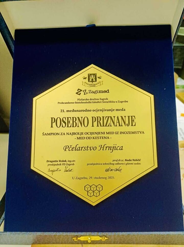 S dvije šampionske titule se proteklog vikenda iz Zagreba u Konjic vratio pčelar Salem Hrnjica. Na, 21. Međunarodnom ocjenjivanju meda Zzzagimed, među 225 uzoraka iz cijelog regiona, njegova livada je ponijela titulu šampiona kategorije, a kesten je najbolje ocijenjeni med iz inozemstva.