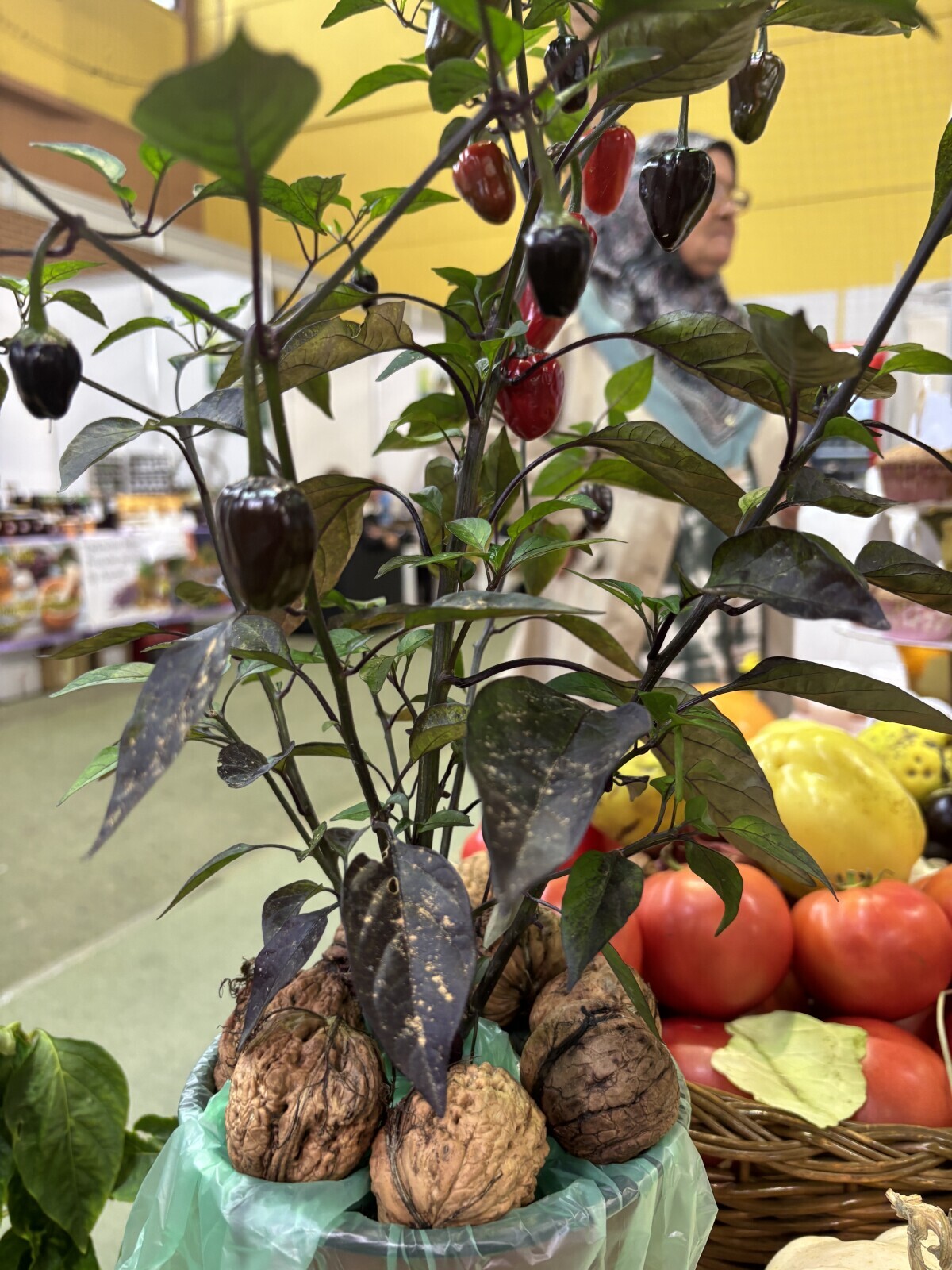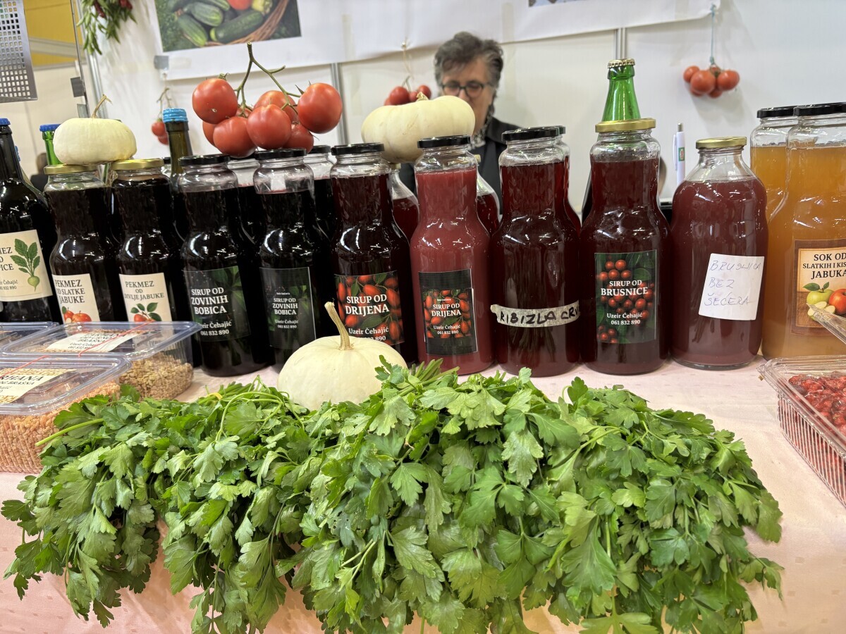 Atraktivni plodovi fafarona i paprika u saksijama, tikve, orasi, paradajz, krastavci, kukuruz.... sve je precizno aranžirano kod Uzeira Čehajića, koji zasigurno ima najšareniji stand na ovogodišnjem sajmu "Jesen u Visokom".