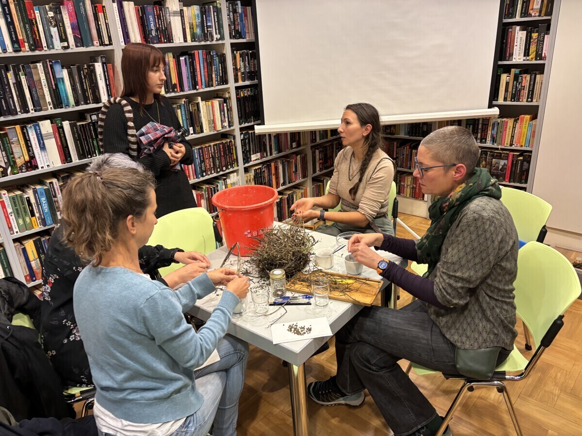 Dunja Zbiljski, voditeljica ZMAG-ove Društvene banke sjemenja na predavanju je i pokazivala kako skupljati sjeme