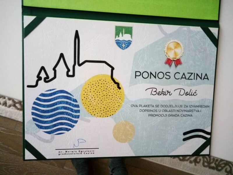Povodom obilježavanja dana Grada Cazina, uručeno mi je priznanje "Ponos Cazina" od strane gradonačelnika mr.sc. Nermin Ogrešević zbog svog doprinosa u agrearnom novinarstvu i stručnom savjetovanju u poljoprivredi.