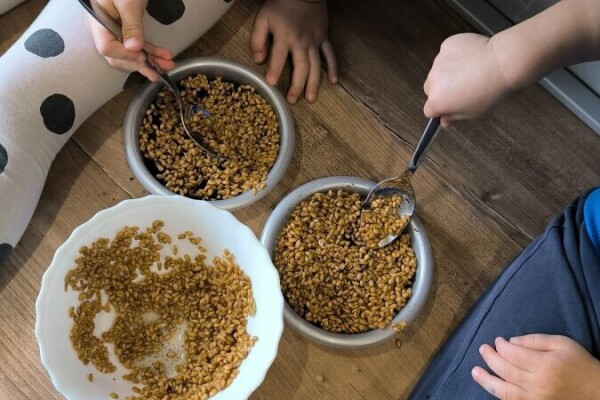 Moje male vrijedne ruke posijale pšenicu. Kod nas ništa bez zemlje 😊🌱 sretan imendan Lucijama ako ih ima ovdje :)