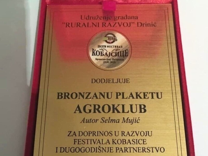 Bronzana plaketa Agroklubu za doprinos u razvoju festivala kobasice u selu Bravsko
