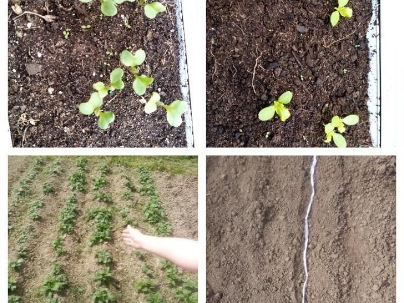 Krompir, salata i kupus rastu, a mrkvu sam tek posijala. Jedan red mrkve sam posijala tako što sam u jedan sloj toalet papira rasporedila sjeme na nekih 5cm i tako prenijela u zemljište da probam (negdje sam pročitala da tako može i da onda nema potrebe za raščupavanjem), a drugi red sam posijala na uobičajen način. #mojepovrće