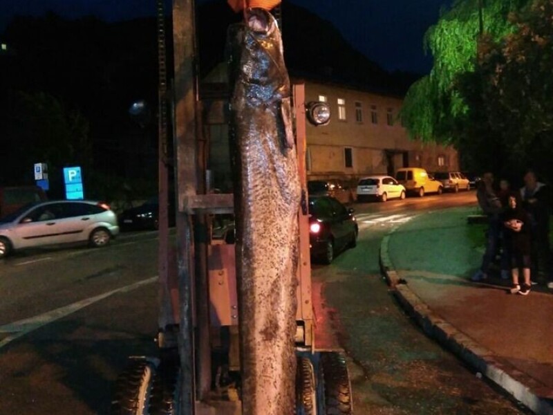 Sinoć u Višegradu ulovljen som kapitalac, težak 84 kg a dug 2,5 metra. Najveći primer do sada. Foto: visegrad24portal.