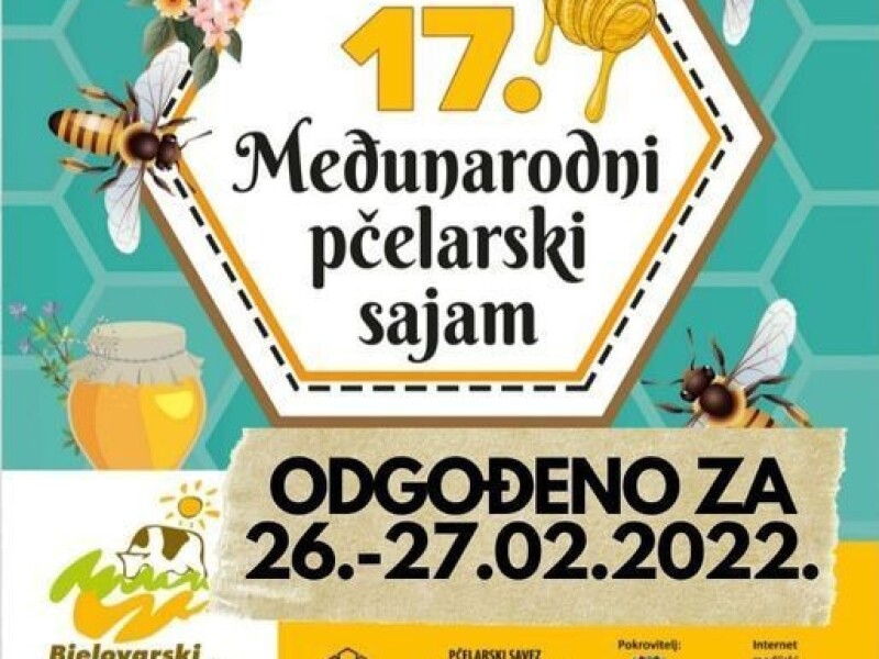 Obavještavamo vas da smo, zbog aktualne epidemiološke situacije i propisanih mjera Stožera civilne zaštite bili primorani odgoditi sajamsku manifestaciju 17. međunarodni pčelarski sajam i 8. izložba vina i vinogradarske opreme. Umjesto najavljenog termina održavanja (5. i 6.02. 2022.), zakazan je novi termin za 26. i 27. 02. 2022. Ukoliko neće biti moguće ni u ovom navedenom terminu, tada će se 17. međunarodni pčelarski sajam održati u sklopu Proljetnog sajma, u terminu od 1. - 3. travnja 2022.