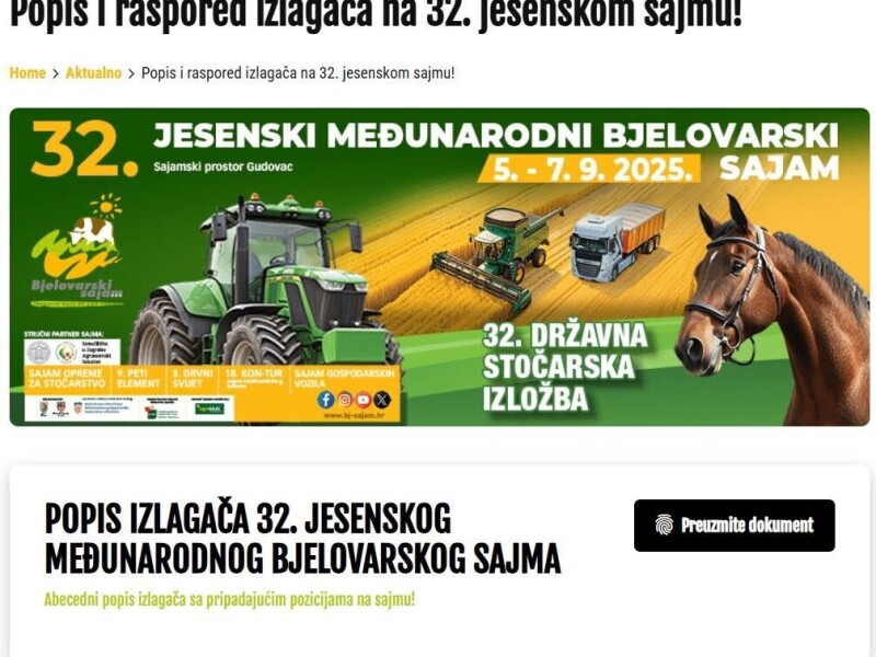 📋 Raspored izlagača i njihov popis možete pronaći na internet stranici Bjelovarskog sajma www.bj-sajam.hr ili direktno putem linka https://bj-sajam.hr/popis-i-raspored-izlagaca-na-32.../ 📲