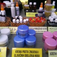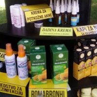 "Ovdje smo izložili paletu proizvoda medno - biljne mješavine. Imamo proizvode za jačanje imuniteta, za probleme sa prostatom, jetrom, praparat romamed 2 koji je možda trenutno i najtraženiji, kao i sirupe od mladih iglica četinara i drugog bilja u kombinaciji. Tu su i propolis sprejevi sa ljekovitim biljem te razne kreme za lice - od nevena, smilja, divlje ruže, biljna ulja, melemi, losioni. Počeli smo i da proizvodimo sredstva za dezinfekciju", navodi ukratko naš sagovornik.