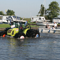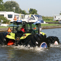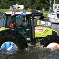 Prije nego što traktor na vodi proglasite "svetim", pogledajte mu u "noge". Nije šala, iz Offingawiera u Nizozemskoj dolazi vijest da je četiri tone težak traktor Claas Axos 320 vozio po vodi. Kako? Navodno su krive češke Mitas gume.