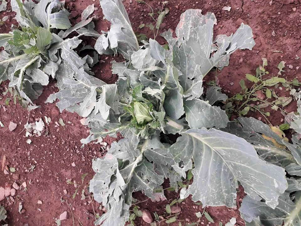 Heljdu je sijala na jednom dunumu, a sada se ne može prepoznati, nakon što ju je grad izlomio, stabiljke su počele truhnuti, pa se na njivi vidi samo korov. Kupus, grah, hokaido tikve su također stradali, ali se pomalo oporavljaju, s obzirom u kakvom su stanju bili odmah poslije nevremena.