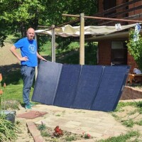 Solarna ploča je prijenosna i sastoji se od četiri dijela koji se jednostavno sklope i rasklope. Baterija u koju su uklopljeni i pretvarači teži oko 25 kg i praktična je za nošenje. Nju uvijek drži punom između 20 do 80 posto. Kaže, kada se na njoj pale ventilatori koji "hlade" elektroniku, tada postaje bučna, ali ipak ne previše. Plan mu je nabaviti i agregat u slučaju dužeg boravka u vikendici u vrijeme kada nema dovoljno sunca.