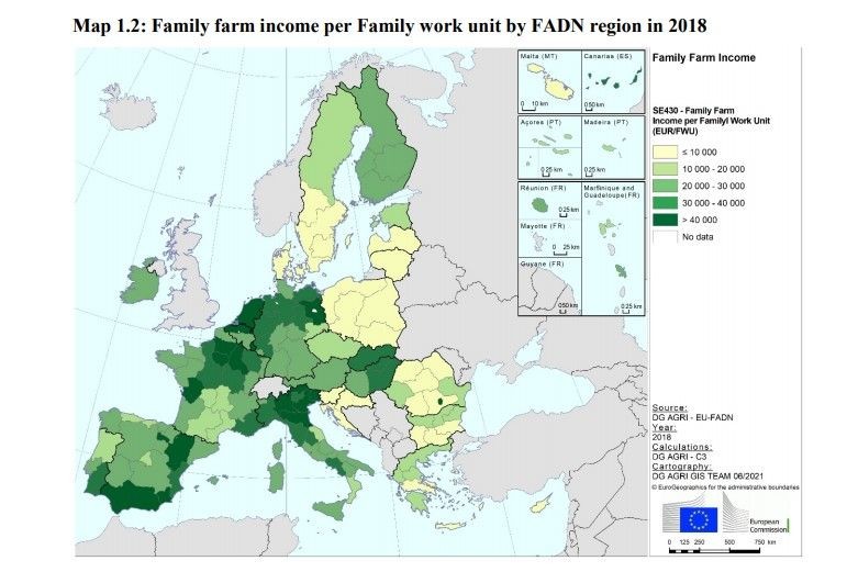 U njemu stoji da je u navedenom razdoblju njihov prihod u EU rastao, dostigavši u 2018. godini 35.300 eura po PG-u i 22.500 eura po godišnjoj jedinici rada (engl. Annual Work Unit - AWU; jedna AWU odgovara jednoj osobi koja radi puno radno vrijeme na gospodarstvu i iznosi 1.800 sati). Međutim, mogu se uočiti značajne razlike u čitavoj Uniji, ovisno o vrsti proizvodnje, spolu, dobi i stupnju osposobljenosti nositelja farmi i voditelja.