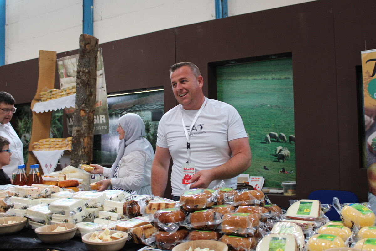 "Postepeno se širimo, stepenicu po stepenicu. Uglavnom imamo sve, od sistema prerade do zrionice. Cijene se kreću od 17 do 27 KM, sve zavisi od vrste. Ima nas pet uposlenih, sve su žene i ja, a mene je zapalo da moram doći na sajam", kaže Smajić dok nam nudi svaku vrstu sira posebno da probamo i pojašnjava njegove posebnosti.
