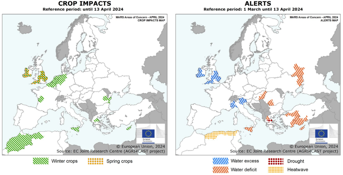 Donekle su poboljšani u sjevernoj i dijelu zapadne Francuske, kao i u Belgiji, Nizozemskoj i sjeverozapadnoj Njemačkoj, ali malo je vjerojatno da će se zimski usjevi na nedovoljno dreniranim poljima u potpunosti oporaviti od pretjerano vlažnih uvjeta tijekom jeseni i zime.