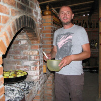 Stojanov drugar, Splićanin Jadran Vušković, nakon ugodnog ćaskanja sa domaćinima o temama od Napoleona do današnjih dana, degustiranja grbavačke rakije i hladnog soka od zove, javno je pohvalio Željkin specijalitet, jelo ispod sača, pripremano čak osam sati. Pod sačem se krckala veprovina u povrću, grbavačkom, neprskanom.