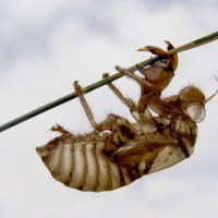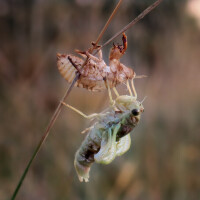 Mislila sam da je to samo svlak, stara koža iz koje se presvukao. Ali, kada sam se približila vidjela sam da je to larva koja se penje na travku snažnim prednjim nogama, a zadnjim pričvršćuje pomoću prozirne ljepljive rastezljive smjese što ispušta iz zatka, nalik oho ljepilu. Mora biti da je prilično čvrsta i otporna na vremenske uvjete jer se svlak još dugo zadržava na travci i nakon preobrazbe. Larva cvrčka tada se primirila i zakukuljila.