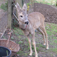 "Srna se od maja oporavila, pripitomila sam je. Čak smo se i sami uvjerili da ima sve što je potrebno za život." Njezina "druga mama" sada već mladoj srni priredila je "švedski stol", s jabukama, repom, žitaricama, žirom, soli i vodom.