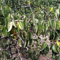 U krošnjama se mogu vidjeti i zone sa suhim listovima, pomiješane sa zonama s normalnom bojom lista.